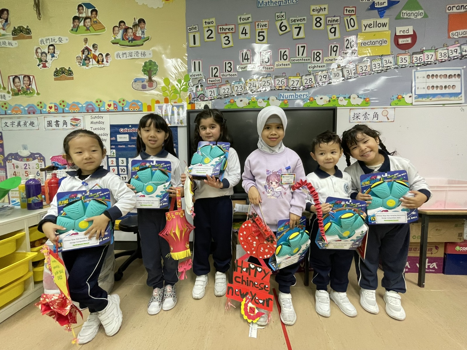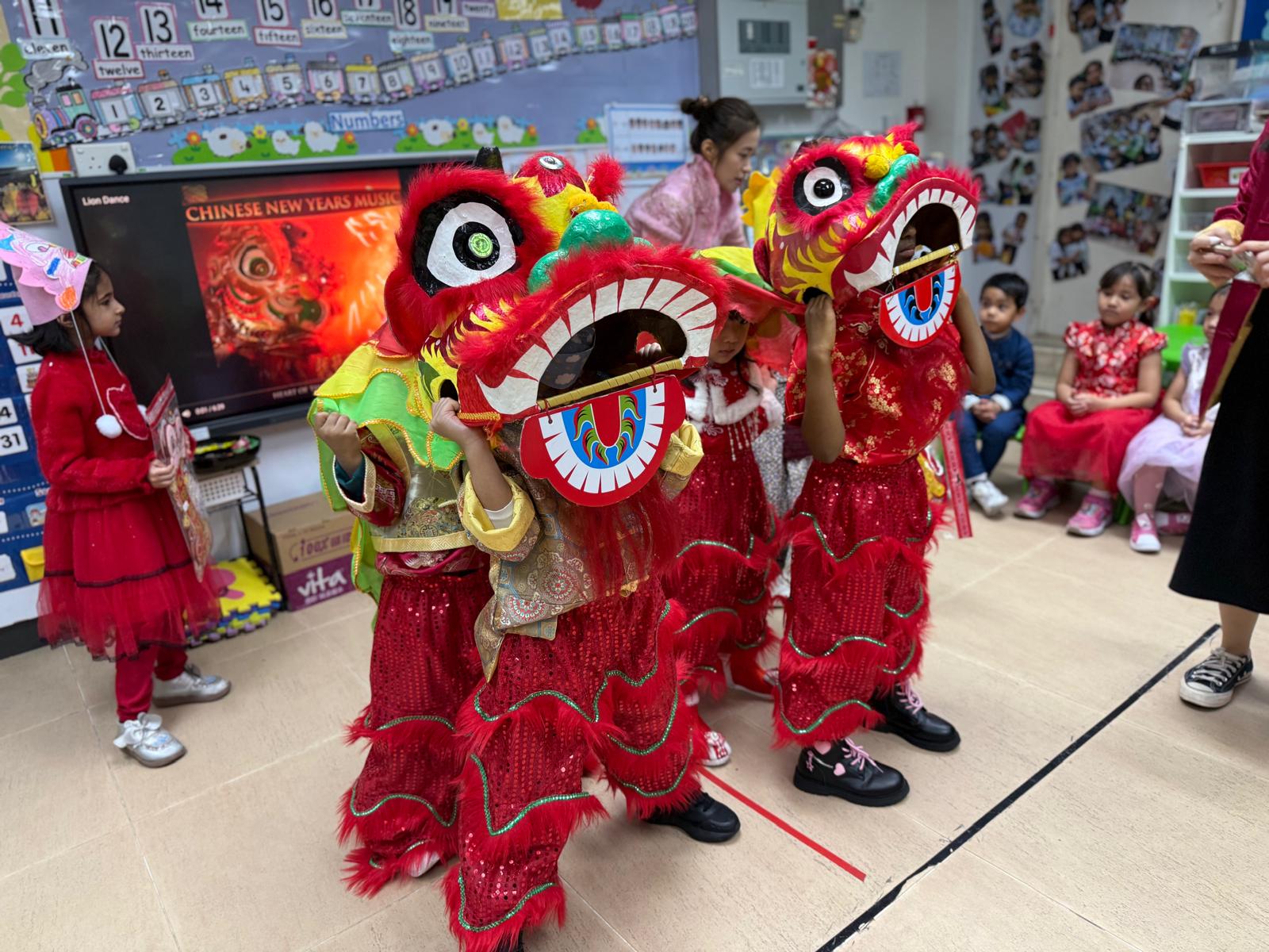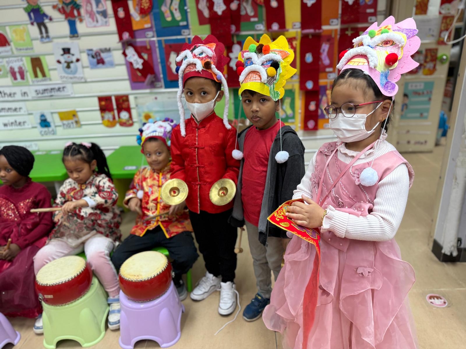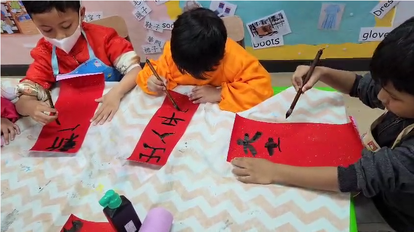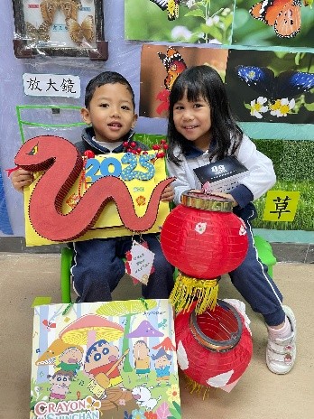 Brief Descriptions:To let children and parents experience Chinese New Year traditions, they learned how to write and make Fai Chun. During the Chinese New Year party, children wore red or traditional clothes, and each class gave performances: K1 did a catwalk show, K2 performed a traditional dance, and K3 presented a lion dance. Children tasted come Chinese festive food as well. Parents and children were encouraged to design Lunar New Year hanging decoration by using strong Chinese characteristics materials. All the craft works were displayed in the school corridor for everyone to enjoy and vote. |